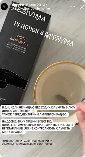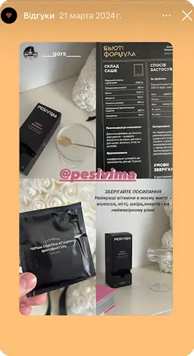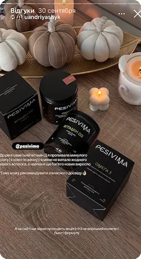 Саме тому я створив PESIVIMA — сучасне українське виробництво вітамінів і нутріцевтиків преміального рівня. Разом із командою лікарів, нутріціологів і технологів ми розробляємо лінійку продуктів PESIVIMA, до якої входять вітамінні та рослинні комплекси, спрямовані на підтримку краси та здоровʼя, балансу нервової системи, краси шкіри, волосся й нігтів, а також профілактику дефіцитів.