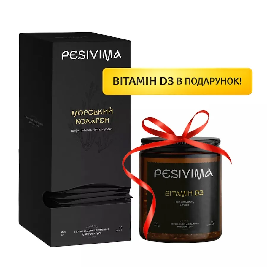 Пептиди морського колагену і вітамін С — для пружної шкіри, блискучого волосся, міцних нігтів і рухливих суглобів.