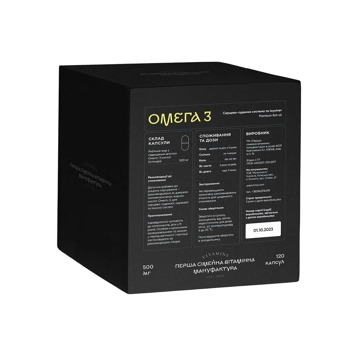 Дієтична добавка до раціону харчування, рекомендована як джерело поліненасичених жирних кислот Омега-3, для серцево-судинної, нервової та імунної систем.