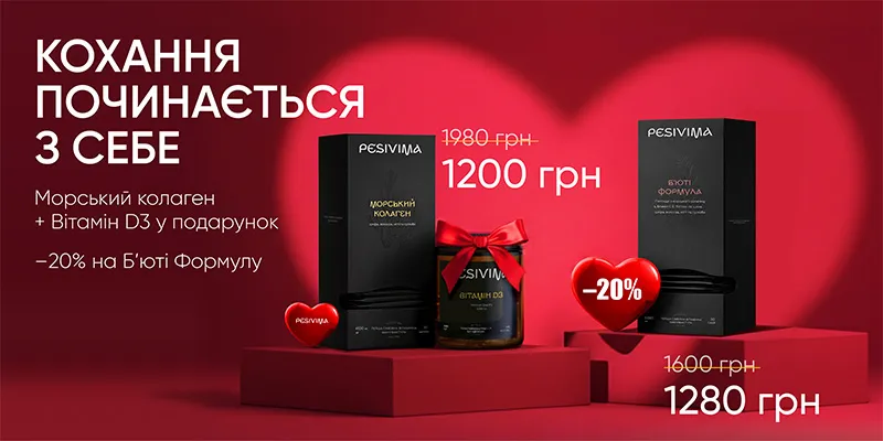 Пептиди морського колагену і вітамін С — для пружної шкіри, блискучого волосся, міцних нігтів і рухливих суглобів. Формат для тих, хто хоче відчути зміни.